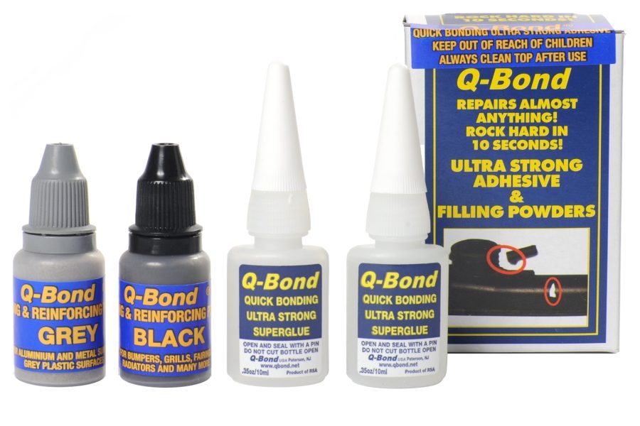 Q-Bond represents the latest technological advancement in adhesives for the repair of almost all types of materials. Q-Bond consists of a two-component system –adhesive plus filling and reinforcing powders– that, when combined, have unique and insurmountable adhesive, filling and reinforcing capabilities, repairing broken parts, holes, fissures very fast and economically. The treated surfaces may be, if necessary, sanded and painted.