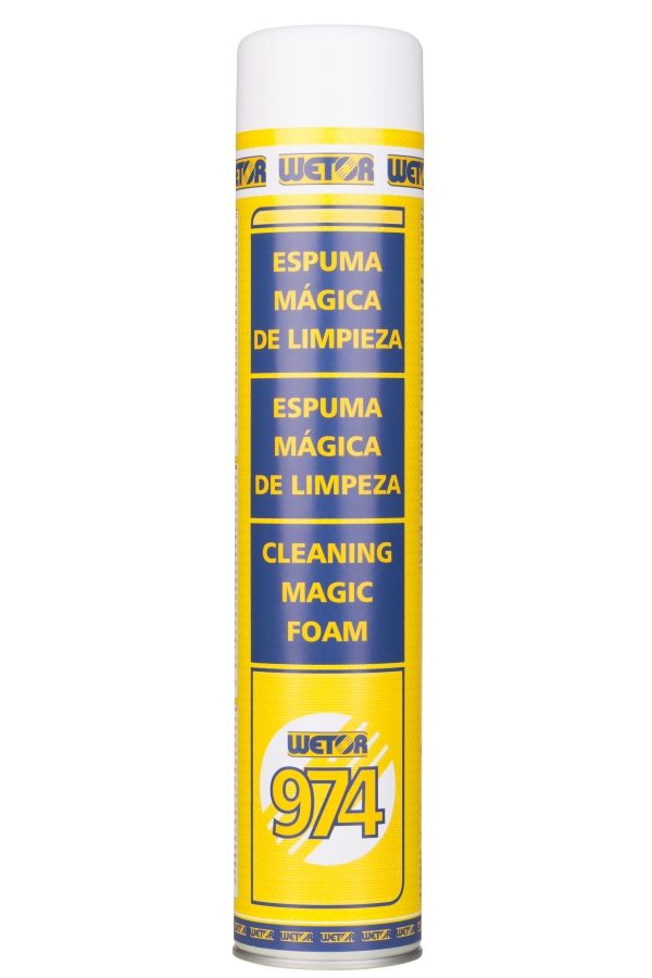 Multipurpose active cleaning foam for all types of surfaces, such as glass, plastic, carpets, textiles, etc.